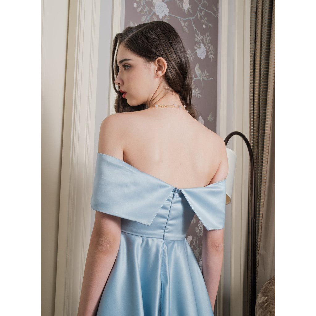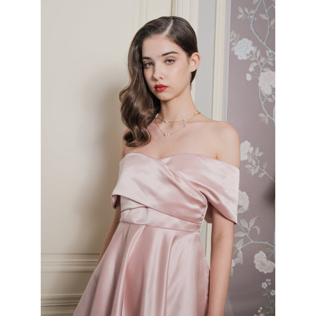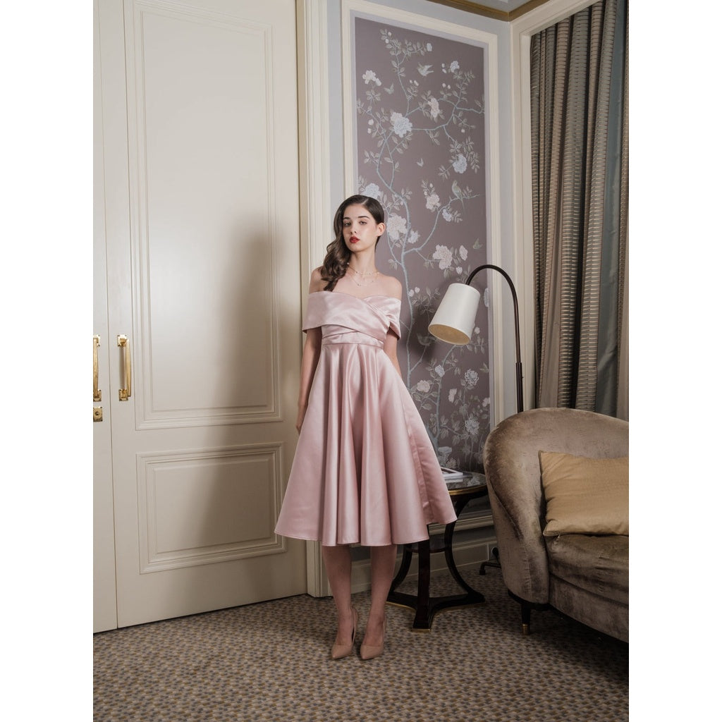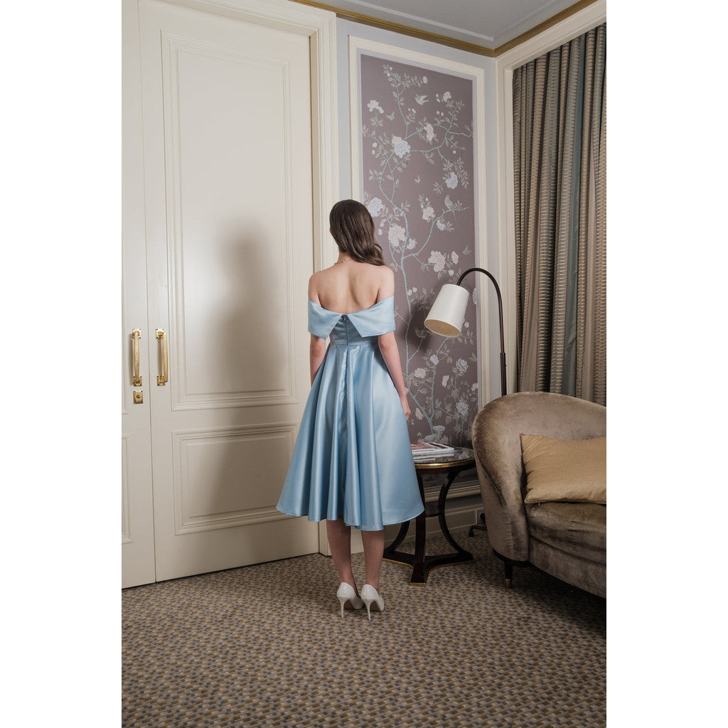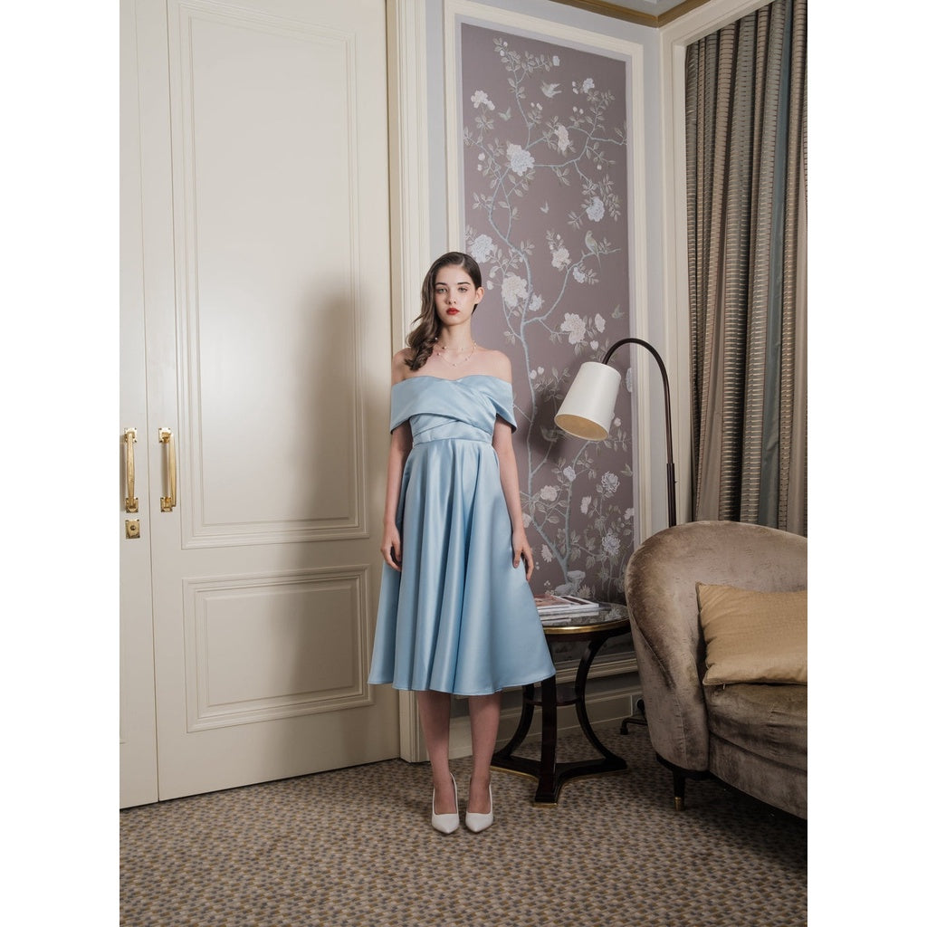 Iconic pieces, styled and proposed for different occasions and will see you through a whole host with this structured duchesse off-the-shoulder cross dress. It's cut with an elegant off-the shoulder neckline and falls to a full-circle midi skirt and slightly sweetheart neckline.