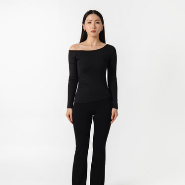 Atasan bergaya minimalis ini dibuat dari bahan stretch yang lembut dan pas di tubuh. Potongan leher off-shoulder yang simpel menambahkan kesan feminin dan elegan, cocok untuk tampilan santai maupun semi-formal.