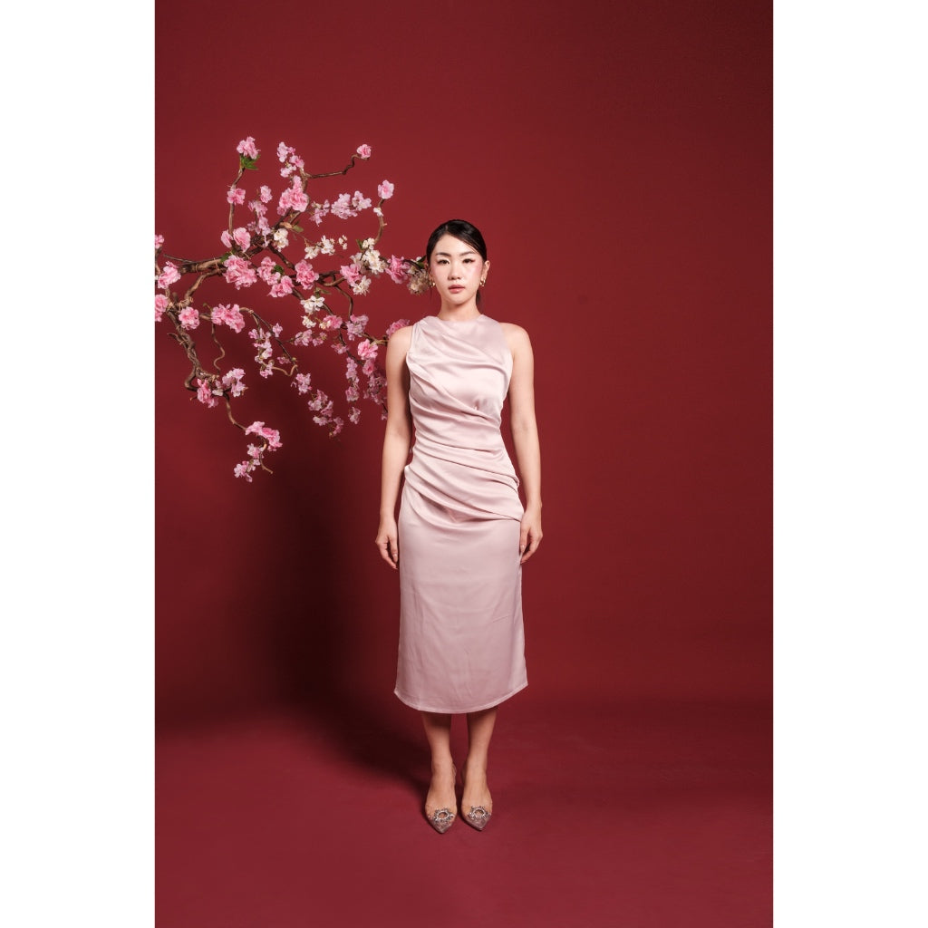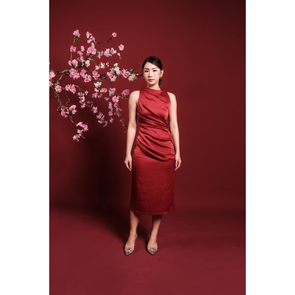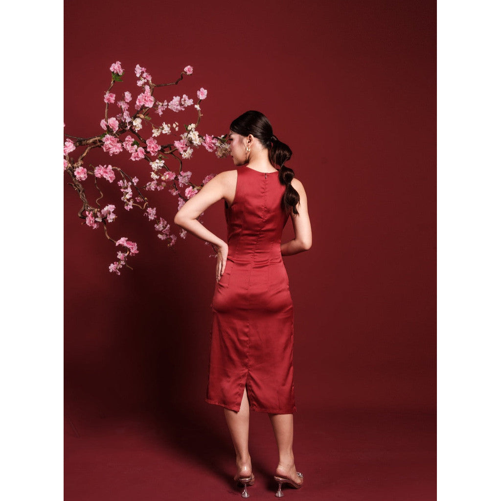 Exude elegance in this midi dress from Was Taken. Designed for an alluring fit, the style features slimming draped silhouette at the waist and straight hem.